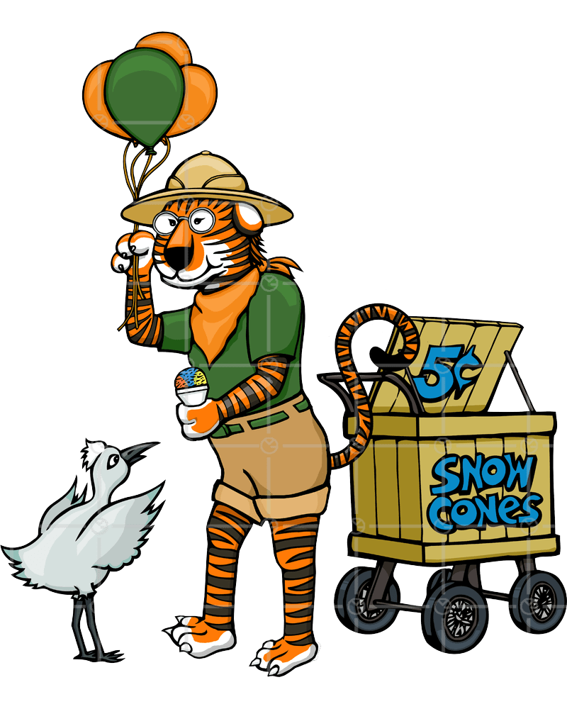 cartoon tiger zookeeper giving snow cone to bird