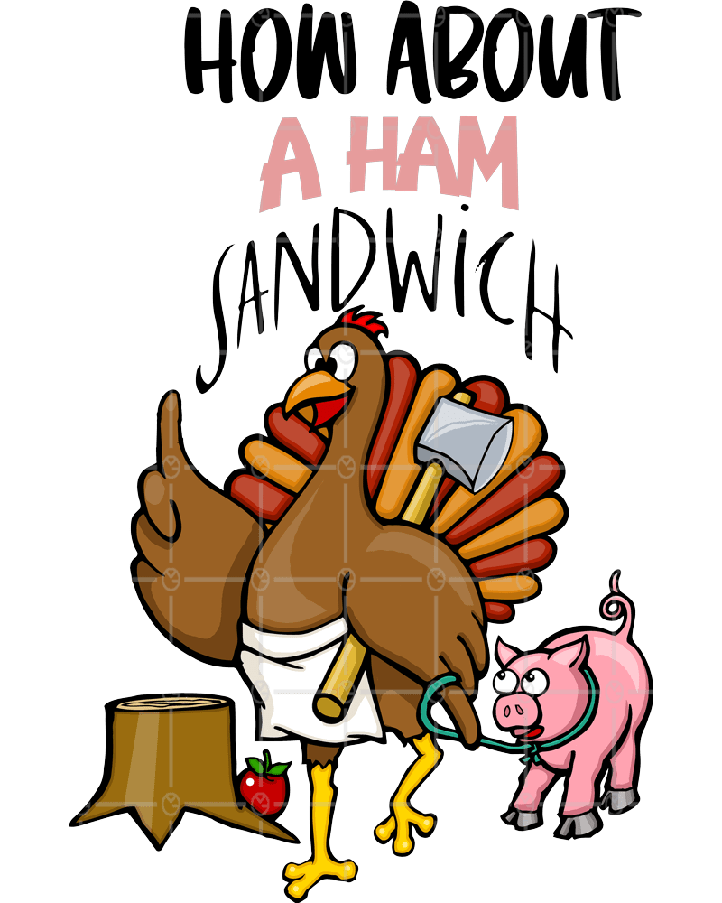 funny cartoon turkey with pig | thanksgiving