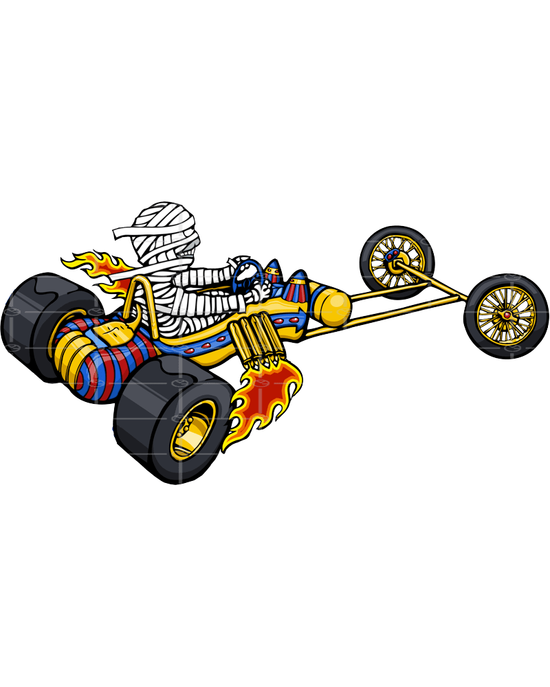 funny mummy driving a sarcophagus go cart | Halloween design
